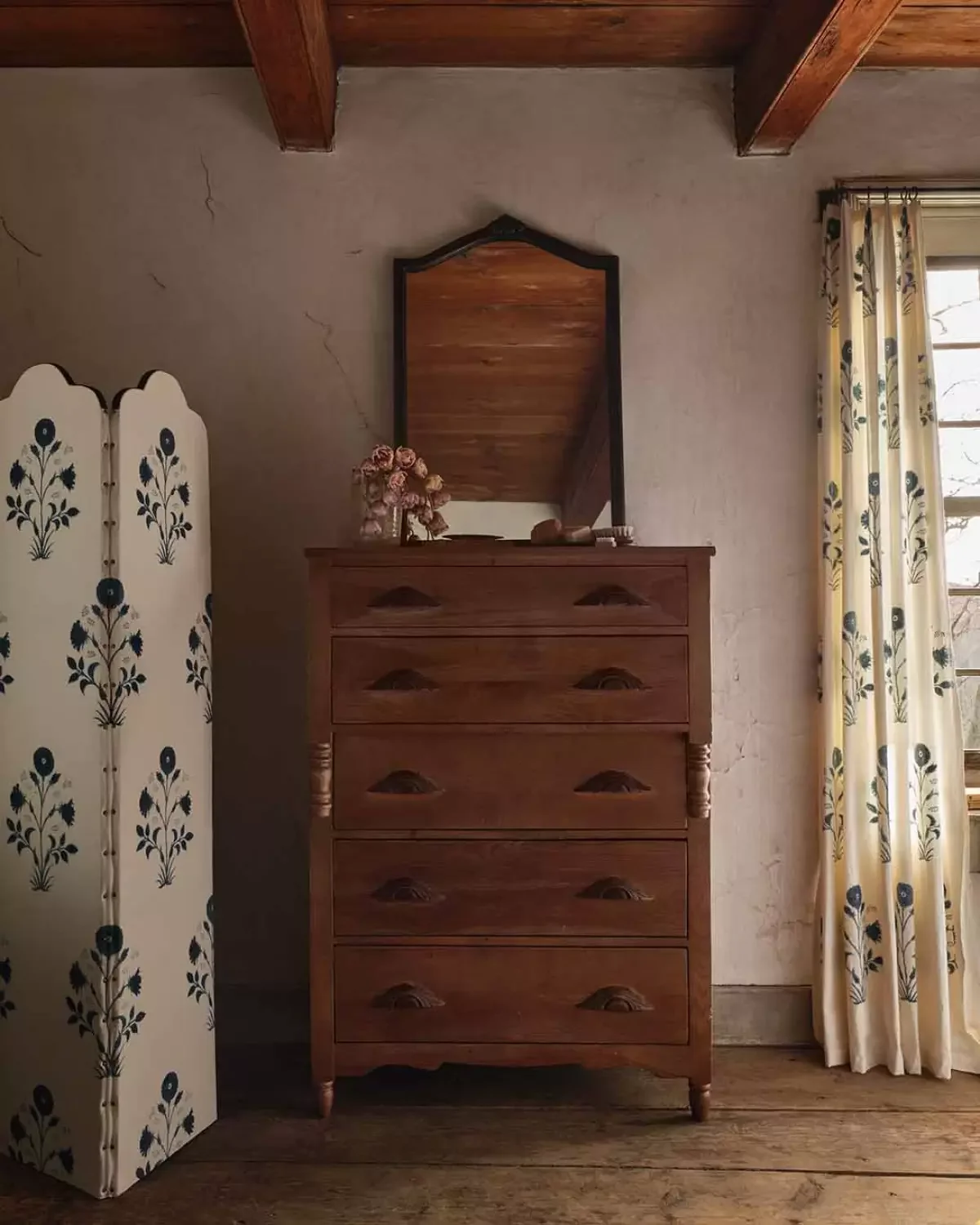 We’re starting to see carved mirrors and iron hardware come back, but not in a heavy-handed way. Same with botanical fabrics. It’s usually one or two pieces that stand out, not an entire room playing dress up.